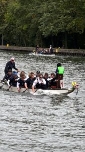 Am Tag der deutschen Einheit hat unsere U40-Bootsbesatzung wieder ihren jährlichen Einsatz auf dem 17. Oberhausener Drachenbootfest beim TC Sterkrade 69 gehabt — und sie haben sich richtig gut geschlagen: Auf der Kurzstrecke (250m) und der Langstrecke (2000m) sicherten sie sich knapp den ersten Platz, was ihnen auch den Gesamtsieg einbrachte 🥇🏆